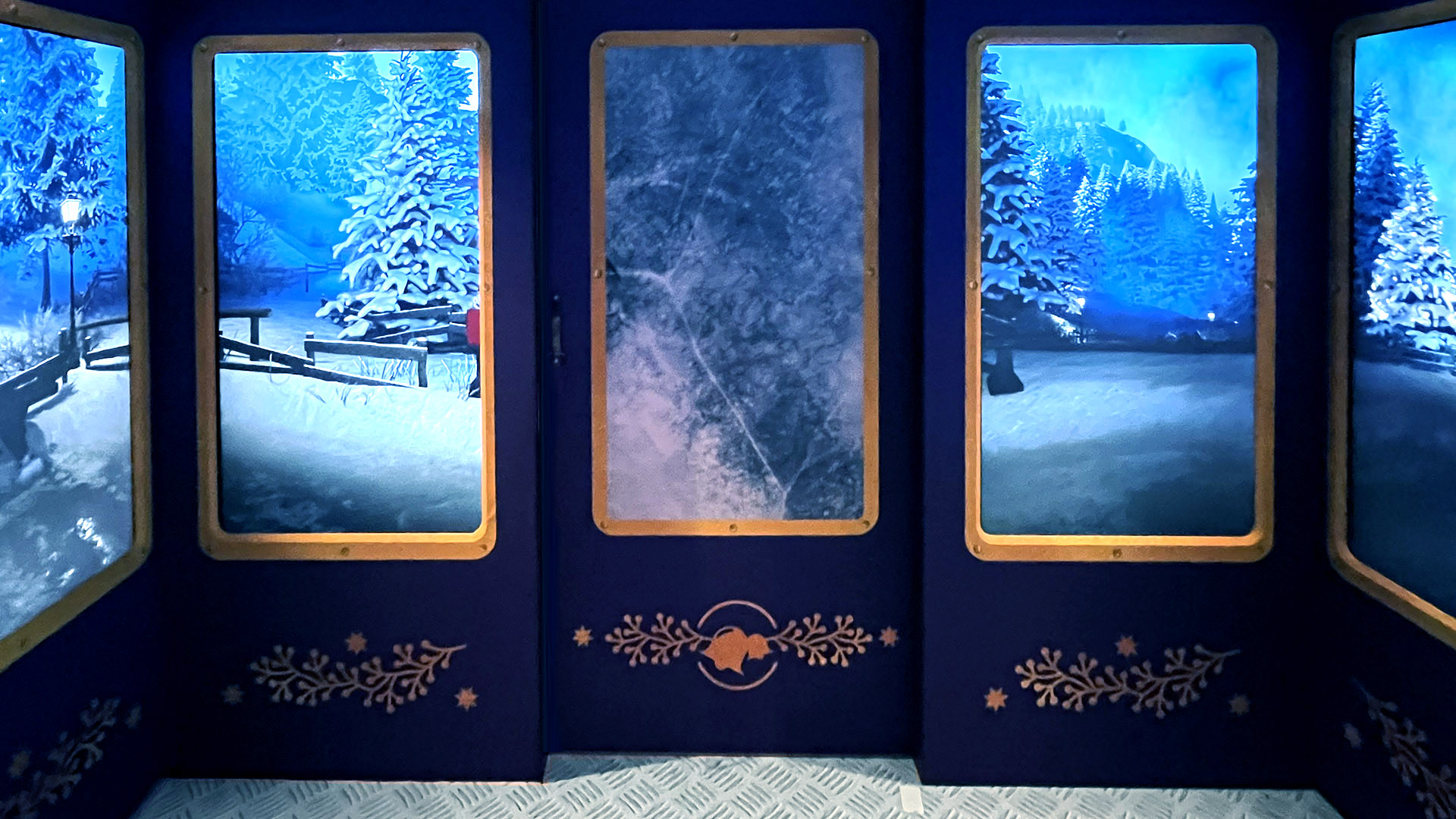 Visitors enter a specially designed gondola space. Eight 55” displays form the gondola’s windows, creating a fully immersive dreamlike ride through winter fantasy landscapes. Upon arrival, the gondola doors open and Santa Claus personally welcomes travellers of all ages.