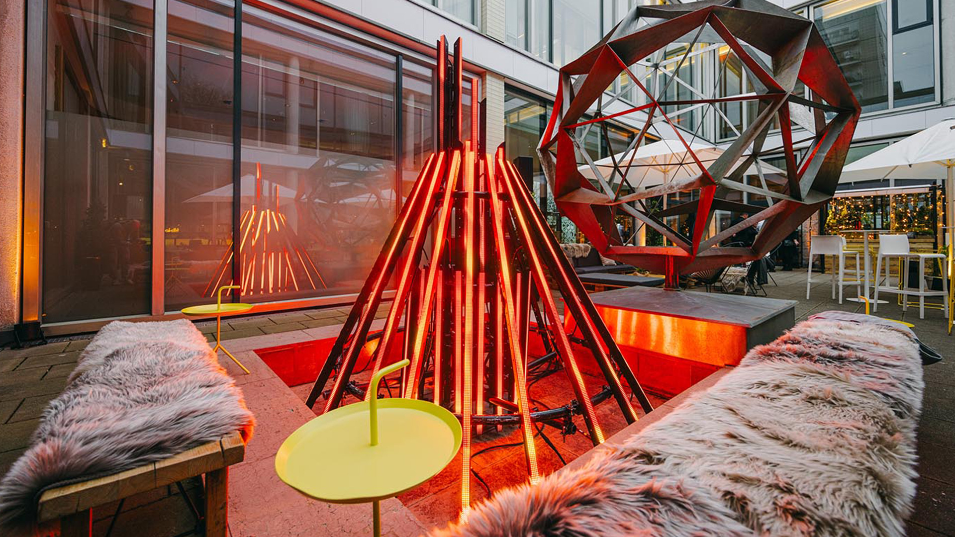 Unser AMBION Highlight waren die TEC Cruisers. Eine interaktive Installation, bei der die Besuchenden per Game-Controller in Echtzeit kleine Elektroautos in der 10 km entfernten TEC Event Campus GmbH Location steuern und erfahren konnten. Die Kamerabilder wurden dabei auf einer großflächigen Soft-Edge-Projektion live ins Cafe Moskau übertragen.